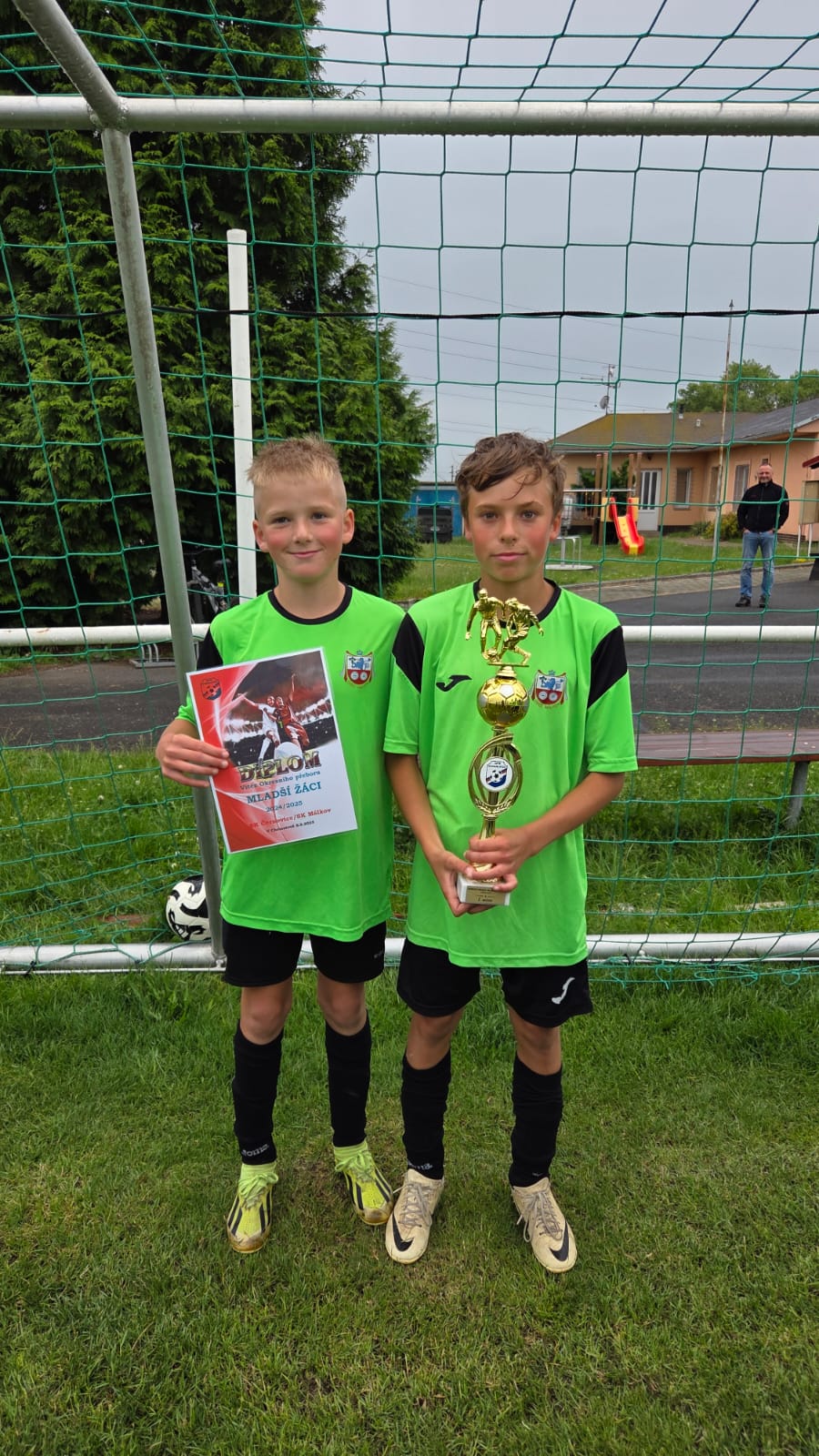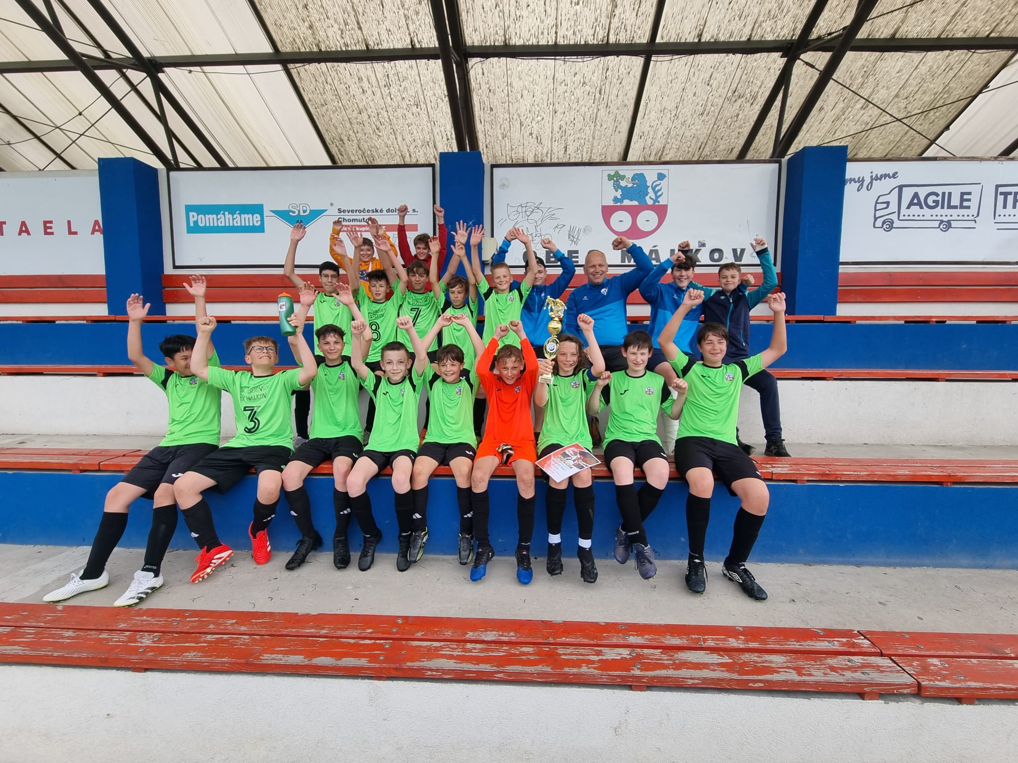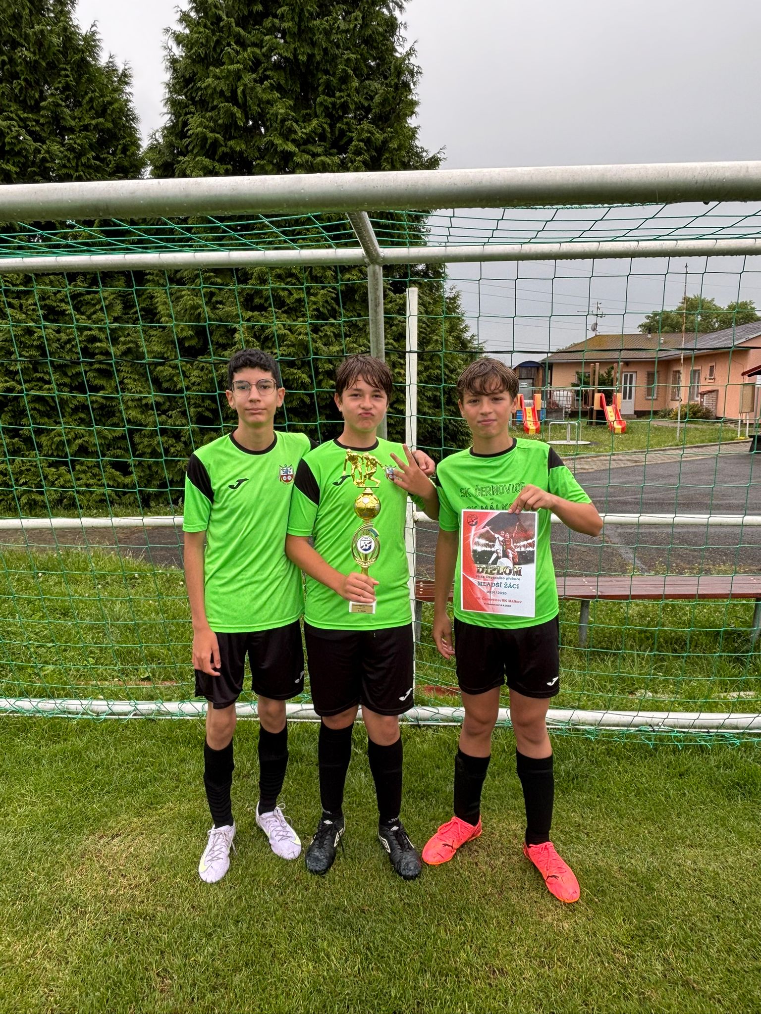 Mladší žáci sdružených klubů SK Černovice/SK Málkov vyhráli soutěž Okresní přebor mladších žáků OFS Chomutov pro sezónu 2024/2025. V nedělním závěrečném utkání soutěže na hřišti v Málkově zvítězili nad AFK LoKo Chomutov vysoko 17:2. Kapitán domácího týmu Eliáš Marcel pak převzal od Místopředsedy OFS Ing. Jana Richtera pohár pro vítěze soutěže. Gratulaci si užili s týmem i trenéři Jiří Skupa a Rostislav Valach. Nejlepšího střelce soutěže pak vyhrál náš Matyáš Bartek s 35 přesnými zásahy.