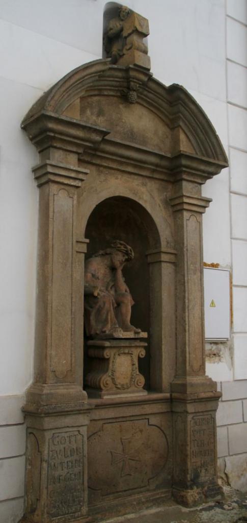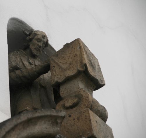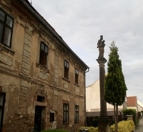 ... celkem nenápadná soška na fasádě obecního úřadu ....